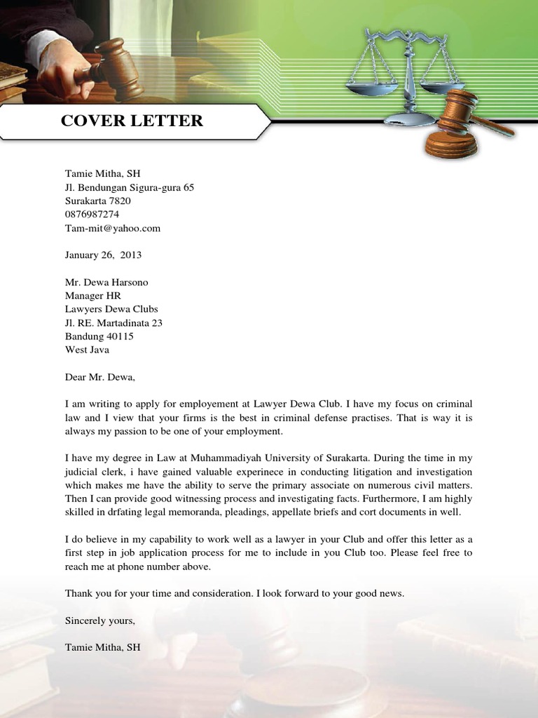 Cover Letter For Lawyers Karir Previ Us