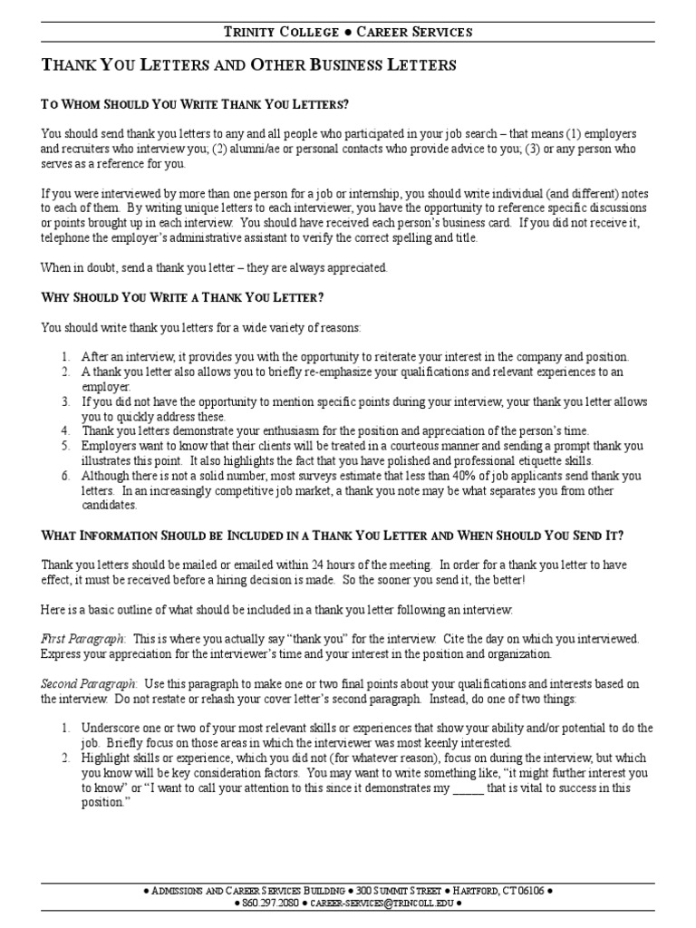 Sample Thank You Letters To Send After A Job Interview Business